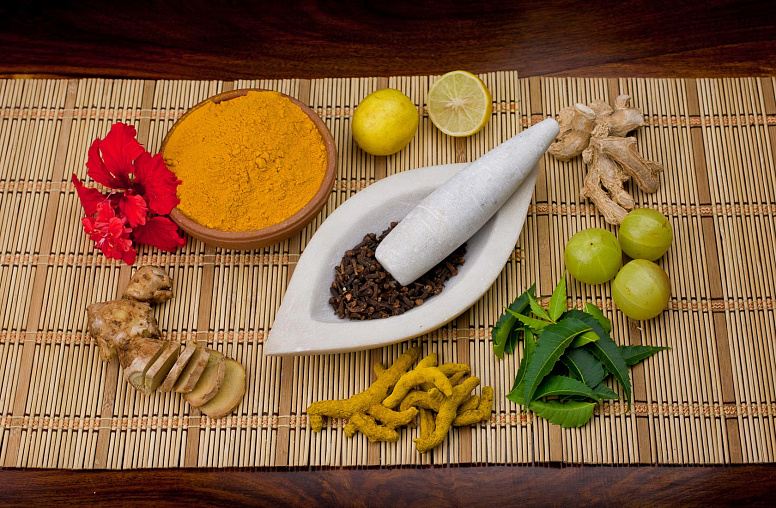Le processus inflammatoire survient généralement en raison d'une mauvaise alimentation et d'un manque de sommeil. La méthode de l'ayurvéda consiste à utiliser des herbes médicinales. Ainsi, le boswellia est généralement recommandé aux personnes souffrant de douleurs dorsales aiguës, d'arthrite et de maladies intestinales. Le curcuma est utilisé comme un puissant antioxydant, réduisant l'inflammation. L'ashwagandha est recommandé pour la réparation des tissus et le rajeunissement.