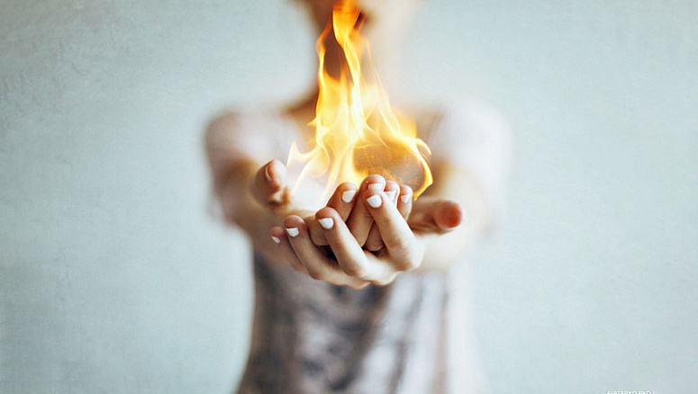 Le feu se manifeste par des émotions telles que la colère, l'intolérance et une ambition démesurée. Rappelez-vous de vayu, qui influence le cours de nos pensées. Si vous ruminez des idées noires, ce vent attisera les choses, grossissant les problèmes et exacerbant l'agni. C'est ainsi que l'on se retrouve parfois dans des situations embarrassantes, regrettant d'avoir perdu son sang-froid et crié sur quelqu'un. Dans ces moments-là, c'est l'agni qui nous emporte : une fois déchaîné, il est difficile à maîtriser. L'important est de s'enthousiasmer, de donner de l'élan à sa vie, sans pour autant se consumer. Il faut trouver un juste équilibre et maintenir l'harmonie entre les éléments. Tout dépend de nous.