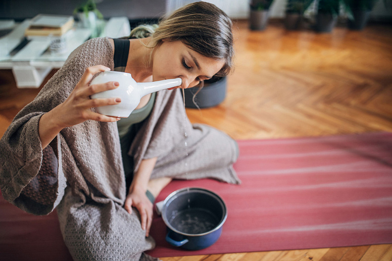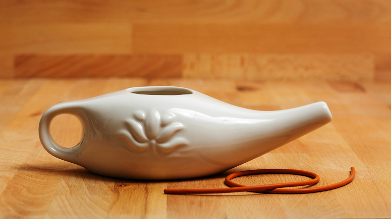 Le jala-neti consiste à rincer les voies nasales avec de l'eau salée.