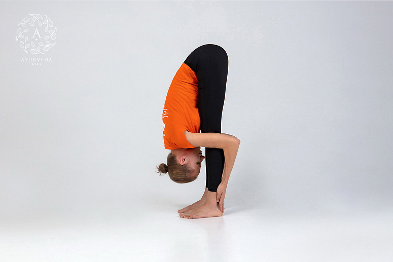 - si vous ne maîtrisez pas encore complètement la posture, pliez les genoux - dans cette flexion, il est important de ressentir l'étirement des muscles à l'arrière des cuisses, mais en aucun cas celui du bas du dos;